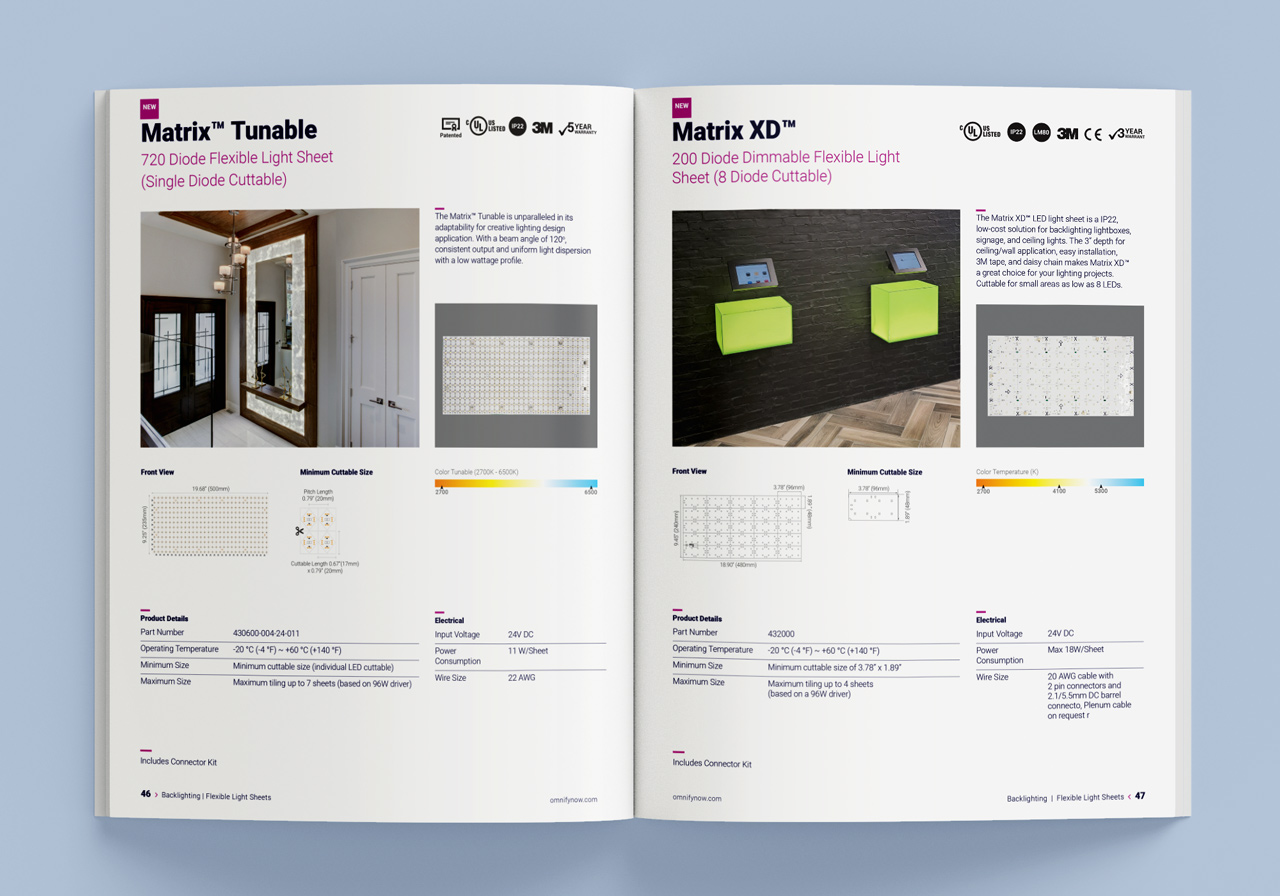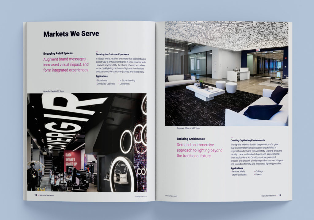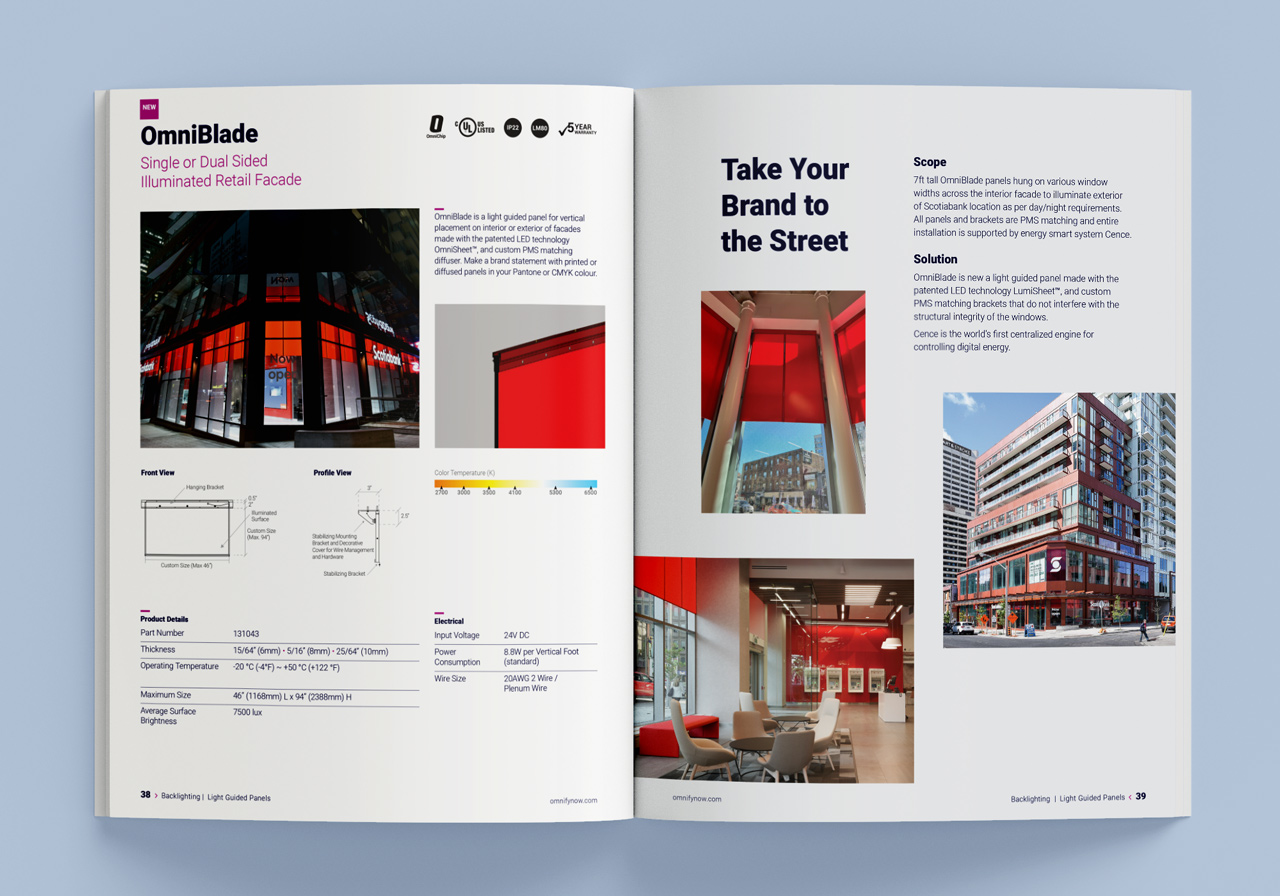 Omnify entrusted me with the task of revamping their catalog to reflect a fresh and innovative look. In this project, I introduced education-themed pages and incorporated large photo spreads to showcase their diverse lighting solutions. The catalog’s new design received widespread acclaim within the industry, effectively capturing the attention of the target audience.